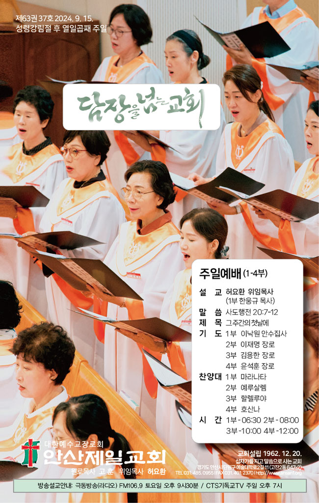 | 20240922 주일, 안산제일교회 주보 및 예배시간 안내 (4) | 2024.09.21 |