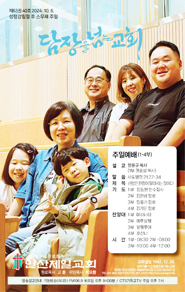 | 20240922 주일, 안산제일교회 주보 및 예배시간 안내 (4) | 2024.09.21 |