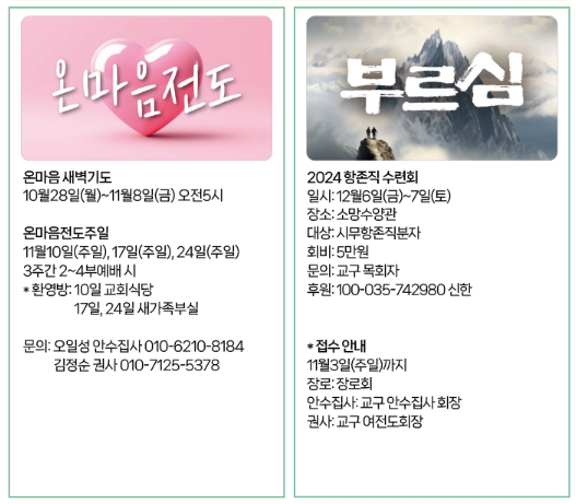 | 20241020 주일, 안산제일교회 주보 및 예배시간 안내 (0) | 2024.10.20 |