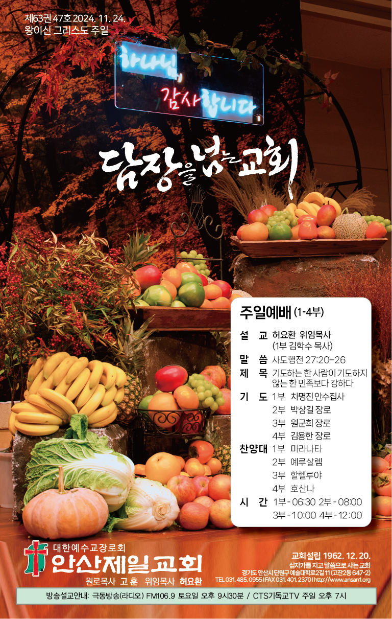 | 20241027 주일, 안산제일교회 주보 및 예배시간 안내 (6) | 2024.10.26 |