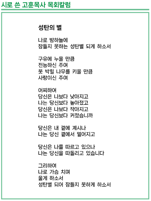 (바로가기를 누르시면 고훈 목사님의 목회칼럼 페이지로 이동됩니다.)